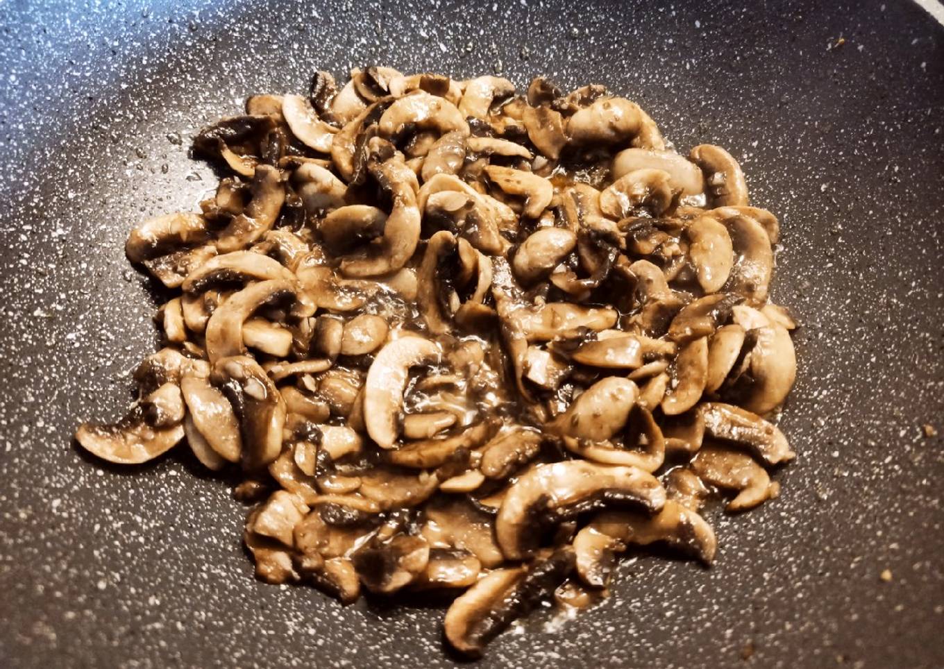 - Añadimos los champiñones cuando el ajo esté a medias y dejamos que saquen todo el agua revolviendo de vez en cuando lo pongo a fuego medio alto. Añado el perejil y revuelvo bien. Y listo!