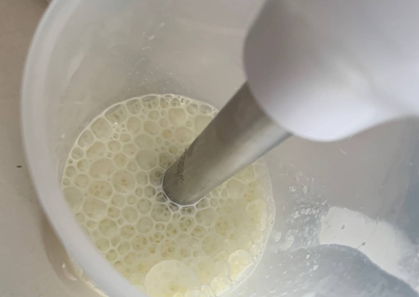 - Mezcla la leche en polvo con la leche nórmal y bate