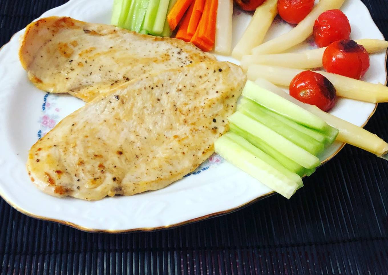 Hey everyone, I hope you are having an amazing day today. Today, we're going to prepare a special dish, Pechuga de pollo a la plancha con guarnición de cherry, pepino, zanahoria y espárrago blanco. It is one of my favorites. This time, I am going to make it a bit unique. This is gonna smell and look delicious.