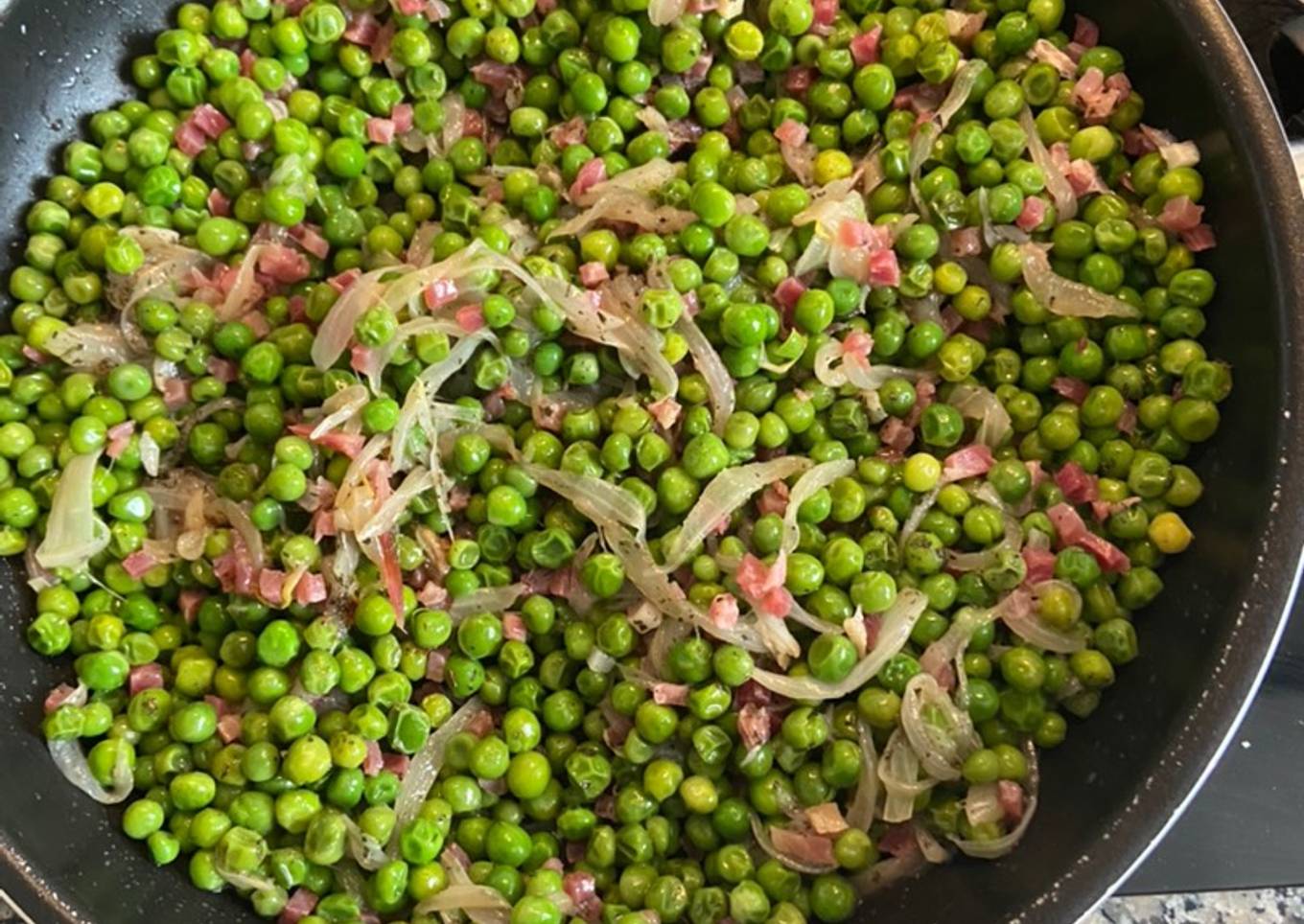 Remover unos minutos y añadir los guisantes - Y remover y dejar un par de minutos al fuego y listos para servir