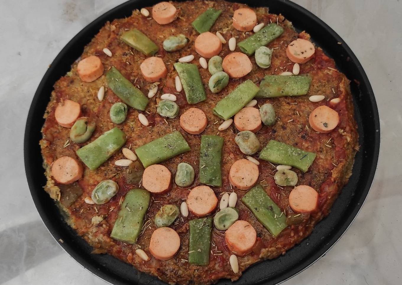 Pizza vegana con base de avena, chía y brócoli