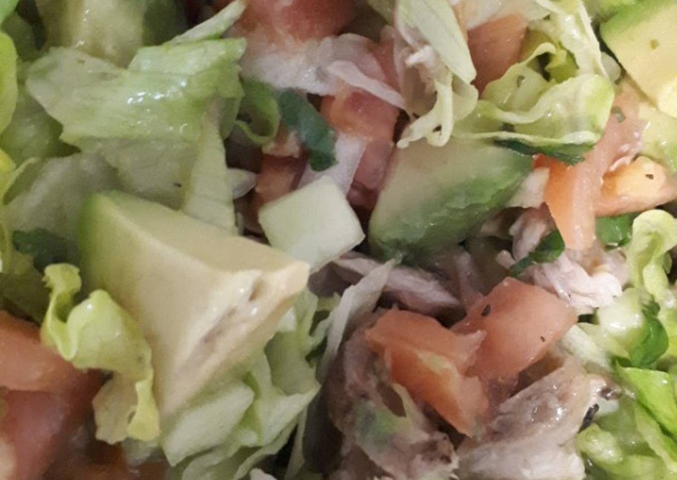 - Lo escurrido (no el líquido, lo otro) se mezcla con el tomate y la lechuga; se baña con la vinagreta, sin que quede demasiado líquido, y se añaden al final los cubos de aguacate. A disfrutar!