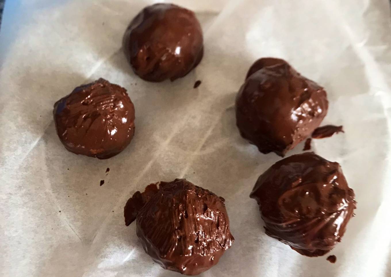 - A continuación derretimos las onza de choco o bien microondas o bien baño María y bañamos nuestros Ferrero