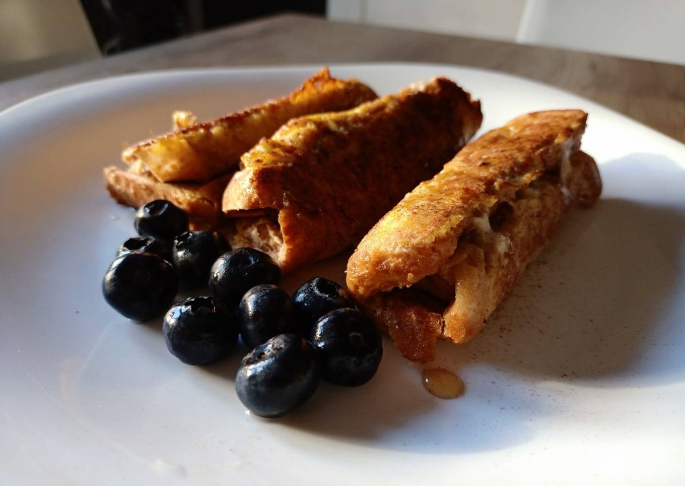 - Una vez hechos, espolvorear un poco más de canela si se quiere y aroma de vainilla. Acompañar los rollitos con fruta, en mi caso arándanos.