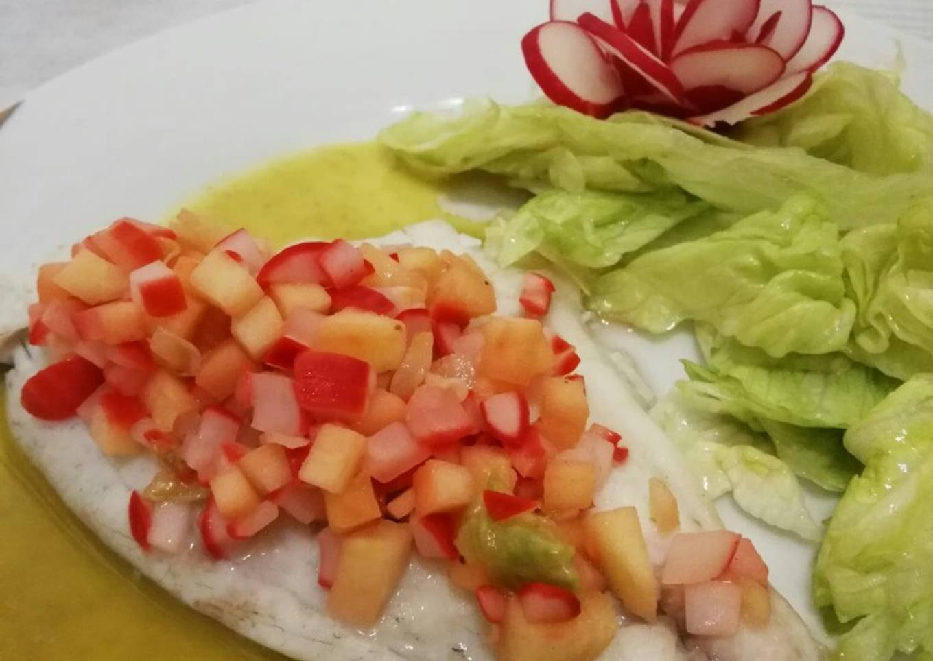Hello everybody, hope you are having an amazing day today. Today, we're going to prepare a special dish, Tartar de manzana y rábano sobre filetes de dorada al vapor. One of my favorites food recipes. This time, I'm gonna make it a bit unique. This will be really delicious.