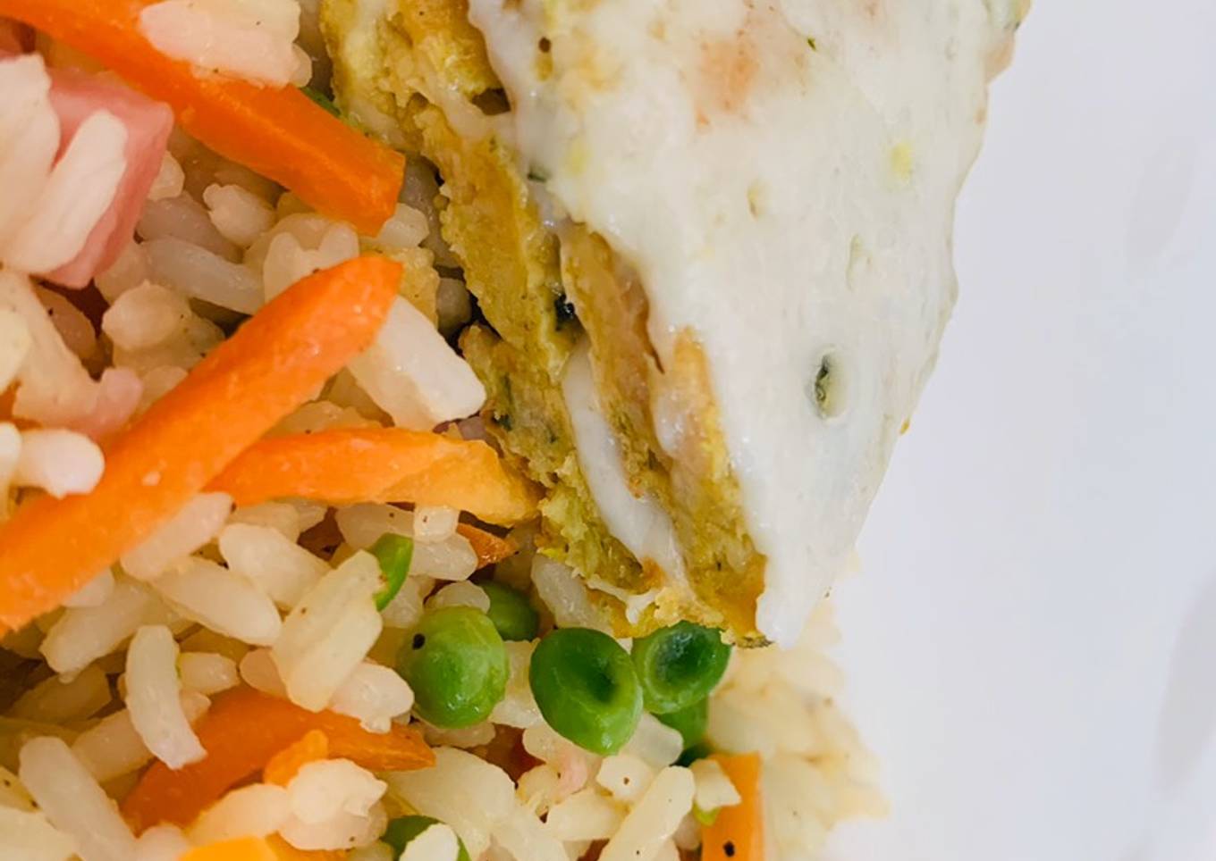 Arroz tres delicias con tortita de calabacín y queso🍚🧀🧀