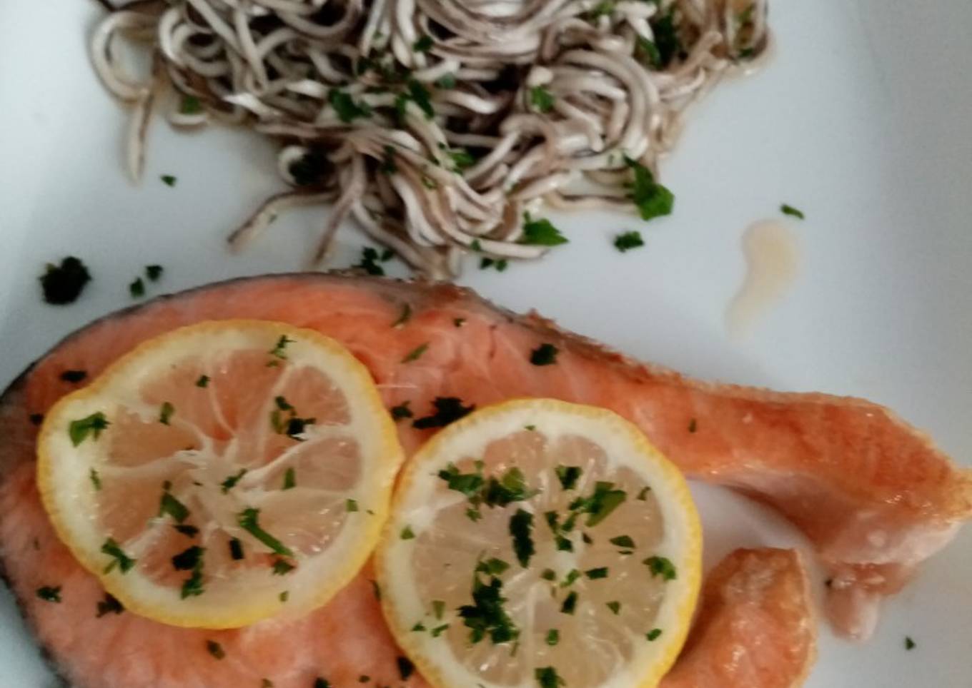 - La rodaja de salmón la hice a la plancha. La salpimenté antes.