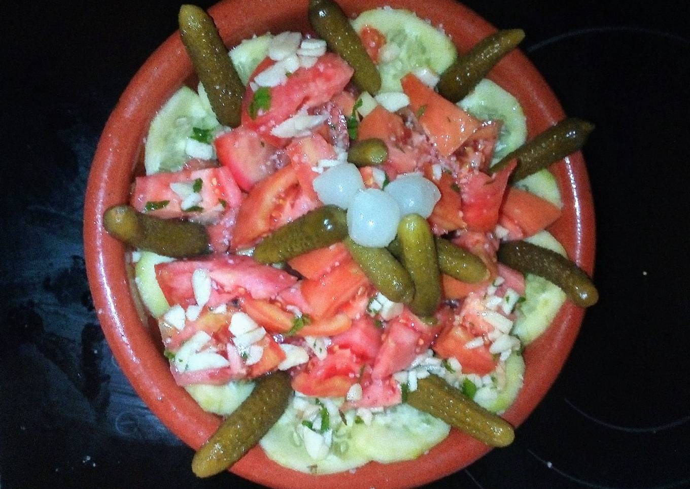- Echamos sal y la mezcla de ajo, perejil y aceite unos pepinillos y listo para comer con una cervecita de campeonato.