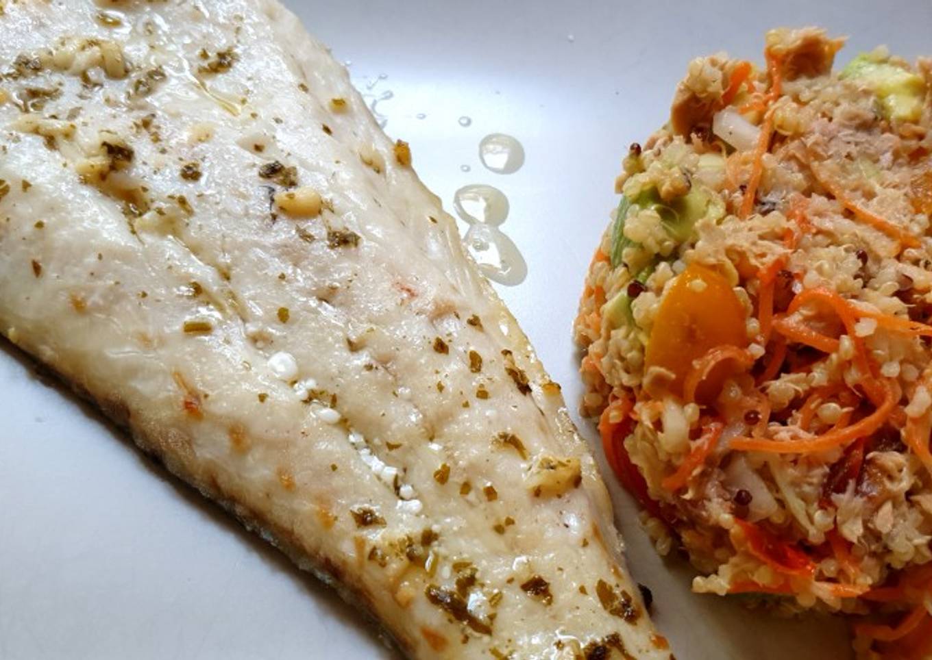 - Emplatar la merluza con la guarnición de ensalada de quinoa