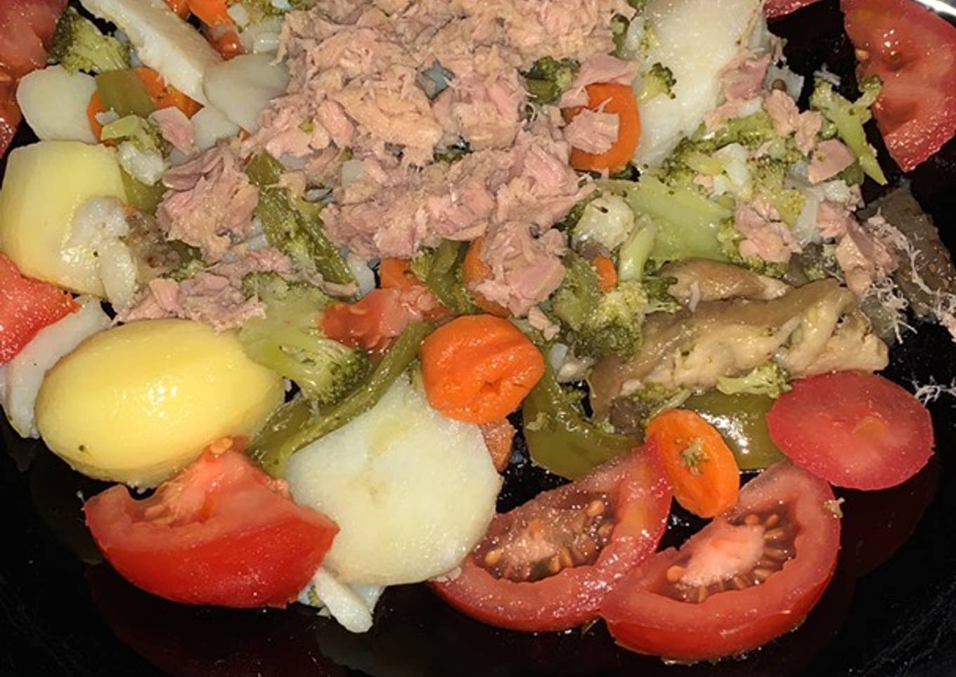 - Al finalizar emplatamos y ponemos atún por encima (yo use atún de lata en aceite de oliva).